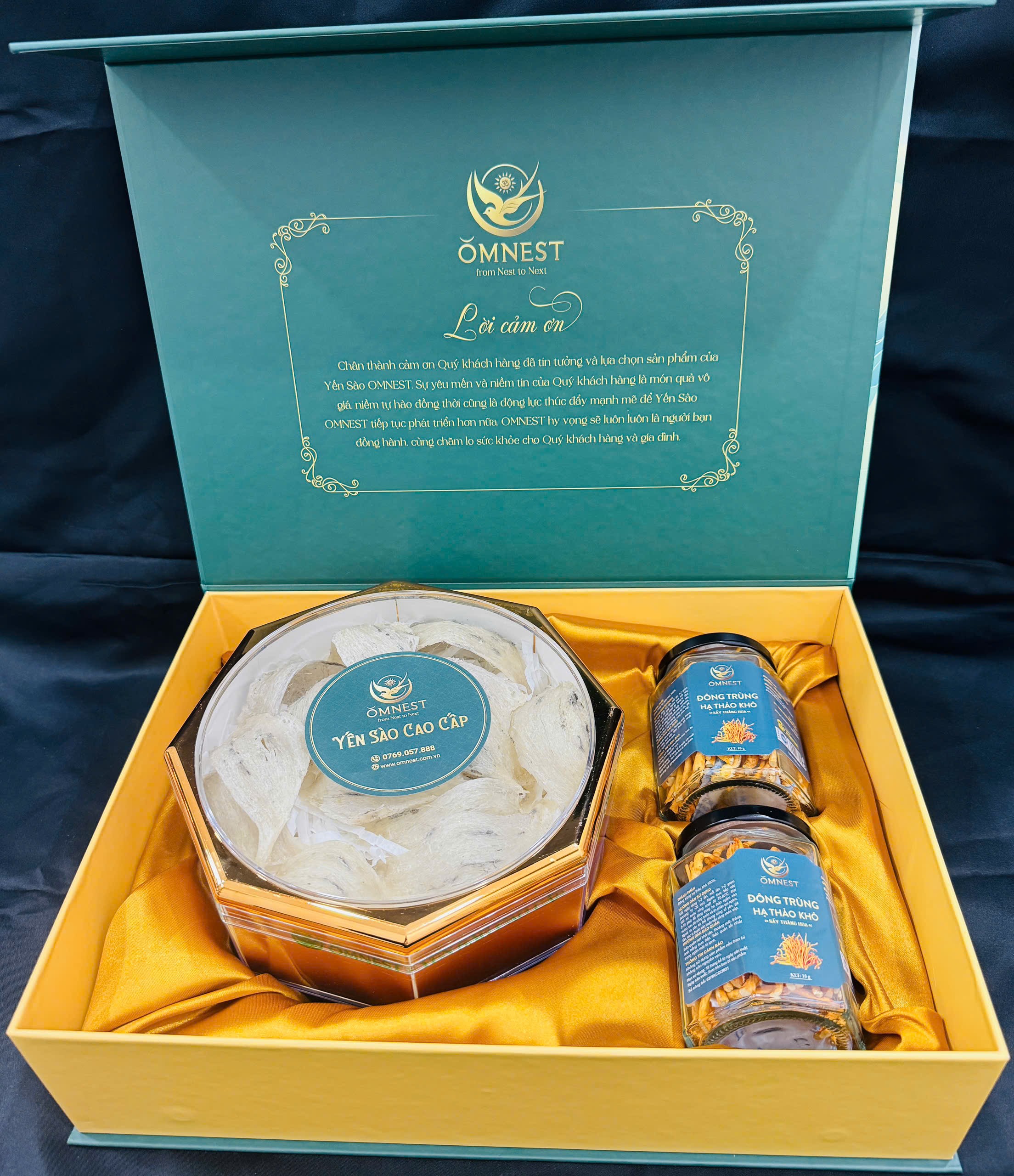 - Tổ Yến sào được đóng gói trong hộp sang trọng, phù hợp làm quà biếu tặng. Quý khách có nhu cầu Hộp quà phụ thu từ 90.000 VND – 350.000 VND/hộp (tùy từng loại hộp).